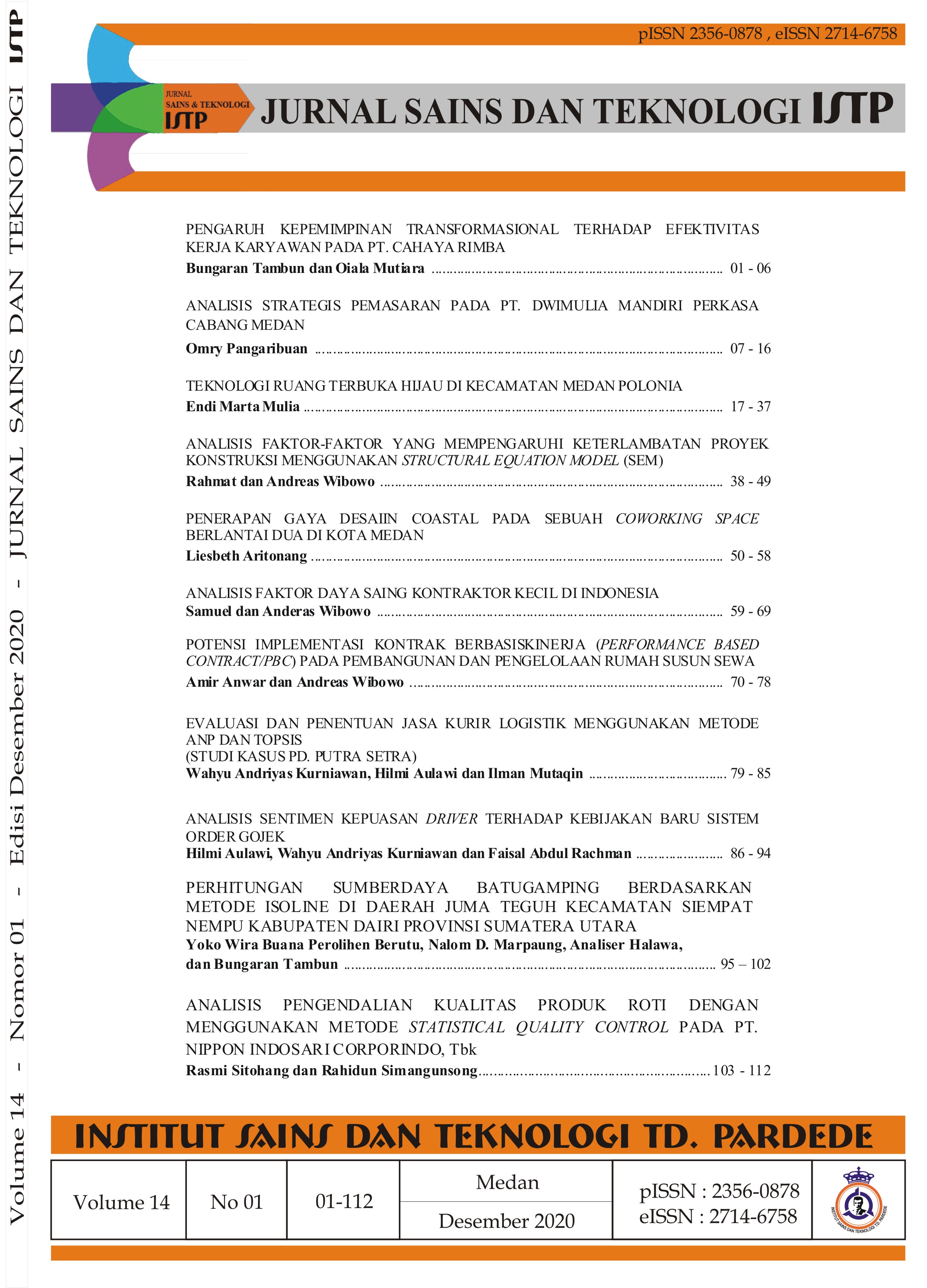 Jurnal Sains dan Teknologi ISTP (Institut Sains dan Teknologi TD.Pardede) ini merupakan salah satu media publikasi penelitian yang menambah deretan jurnal dengan disiplin ilmu sains dan teknologi, dengan pISSN 2356-0878 dan eISSN 2714-6758 diharapkan mampu menjadi media pemicu untuk menambah keinginan kaum akademisi untuk mengadakan penelitian, menambah karya penulisan, serta menjadikan media ini salah satu penyebaran perkembangan informasi sains dan teknologi terbaru kepada masyarakat luas
