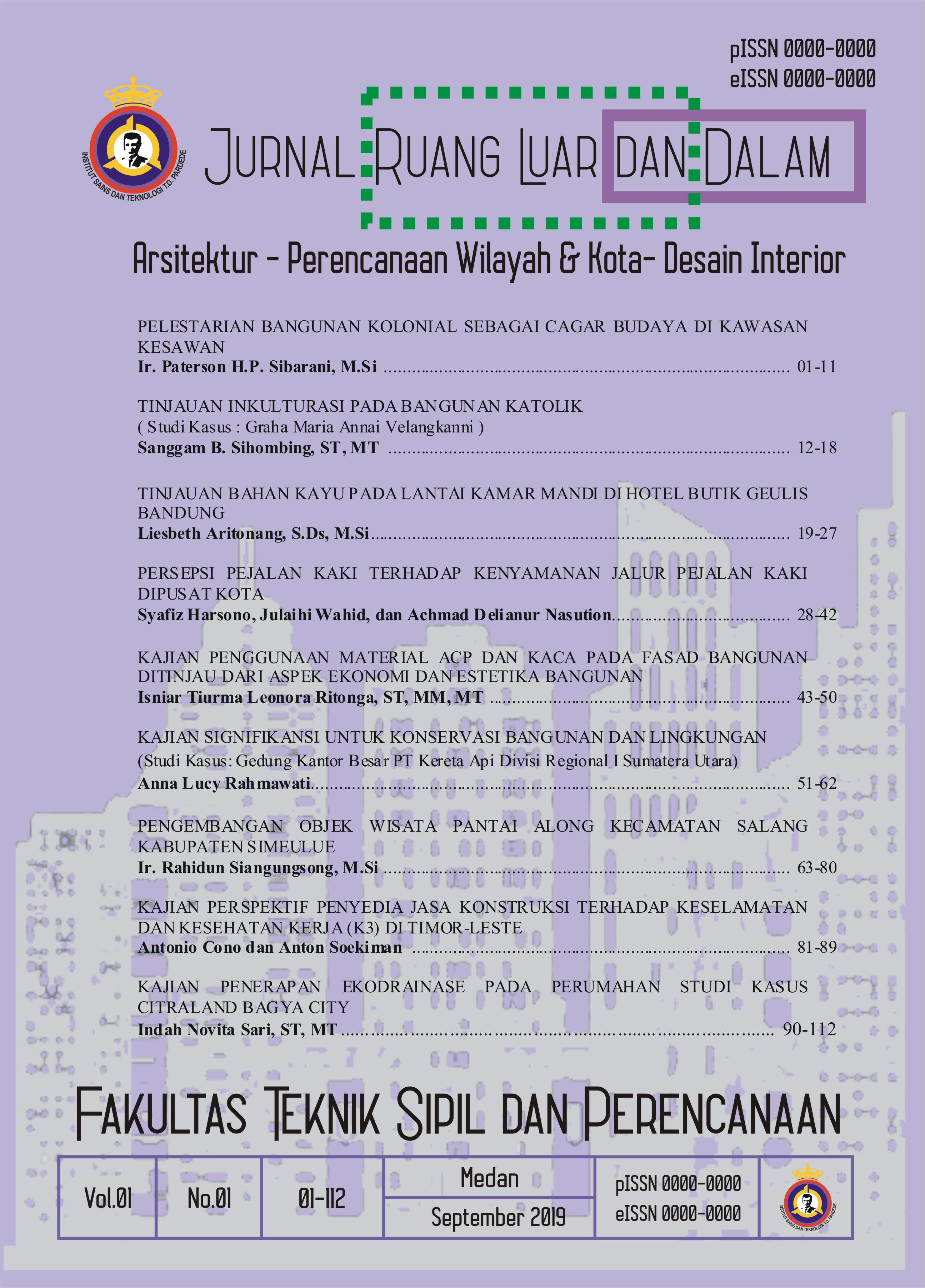Jurnal Ruang Luar dan Dalam FTSP (Fakultas Teknik Sipil dan Perencanaan), Institut Sains dan Teknologi TD Pardede, ini merupakan salah satu media publikasi penelitian yang menambah deretan jurnal disiplin ilmu sains dan teknologi pada umumnya, dan untuk jurusan Arsitektur, Perencanaan Wilayah dan Kota atau Planologi serta Desain Interior pada khususnya, dan diharapkan mampu menjadi media pemicu untuk menambah karya penulisan, serta menjadikan media ini salah satu penyebaran perkembangan informasi sains dan teknologi terbaru kepada masyarakat luas.
